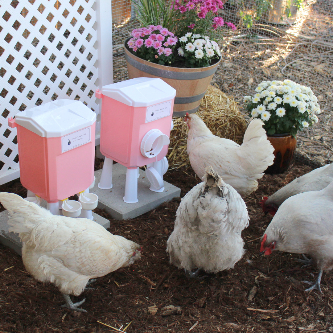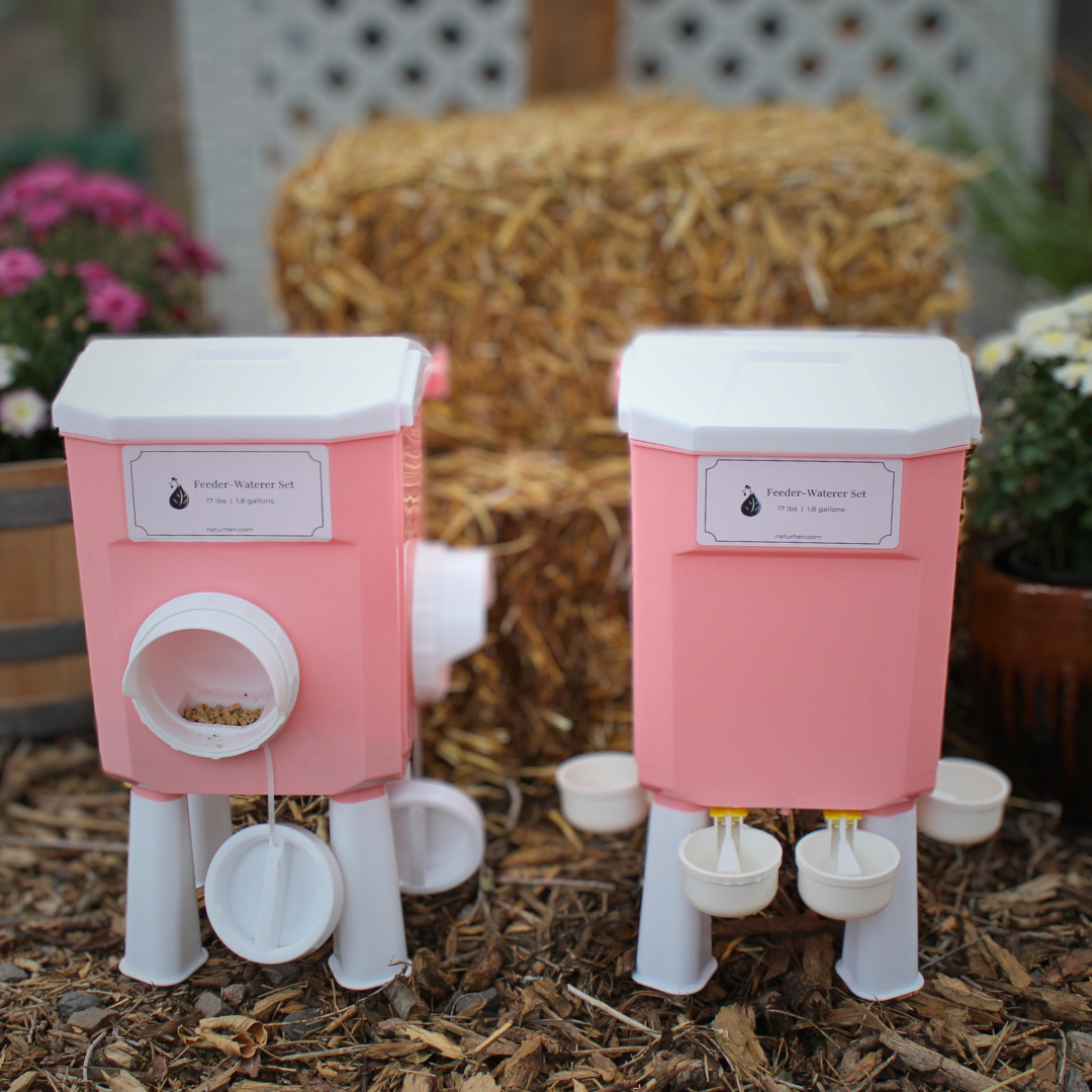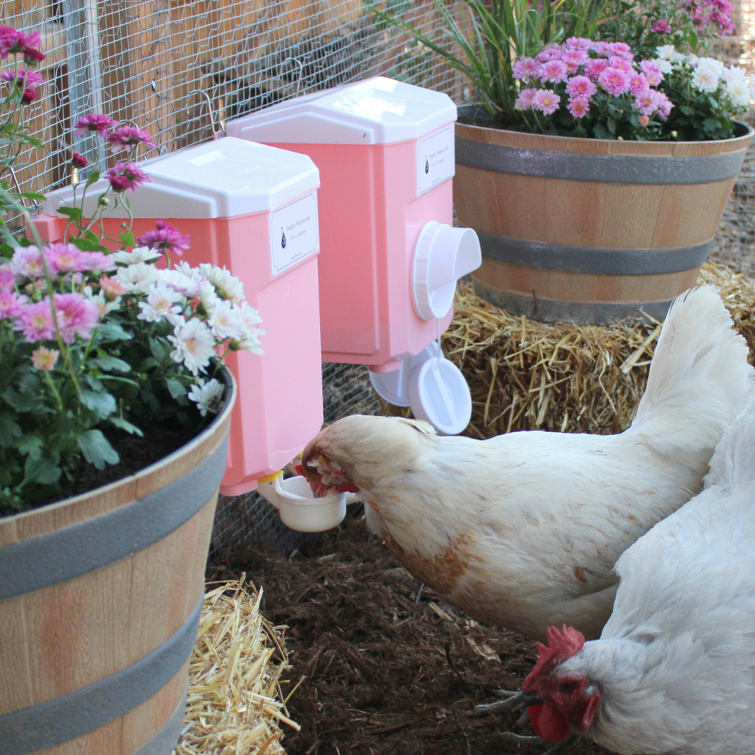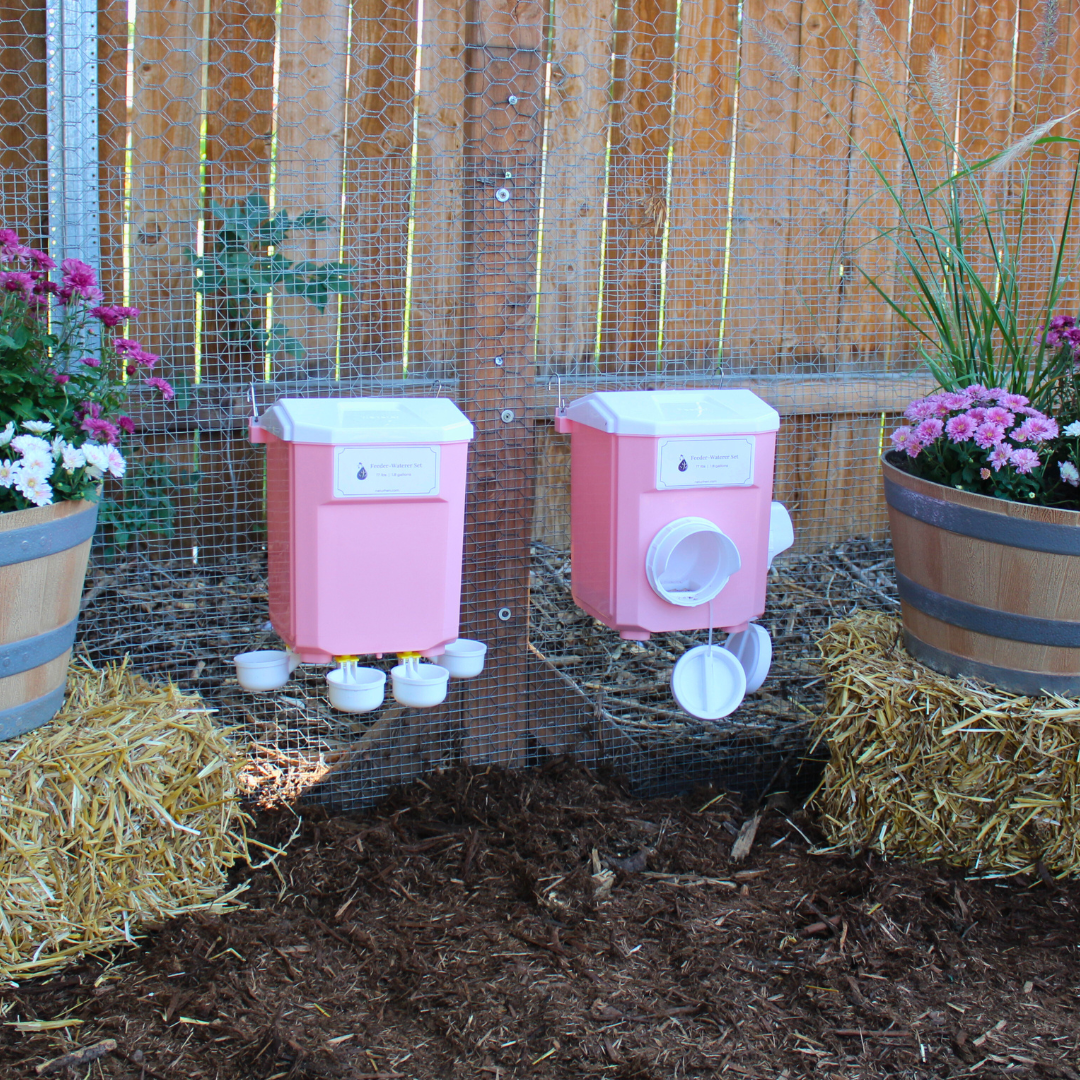 A feeder-waterer set that is as cute as your chickens! This pretty-in-pink functional feeder and waterer by NaturHen is ideal for smaller backyard flocks. Featuring multiple mounting options, easy assembly, and simple refilling and cleaning.